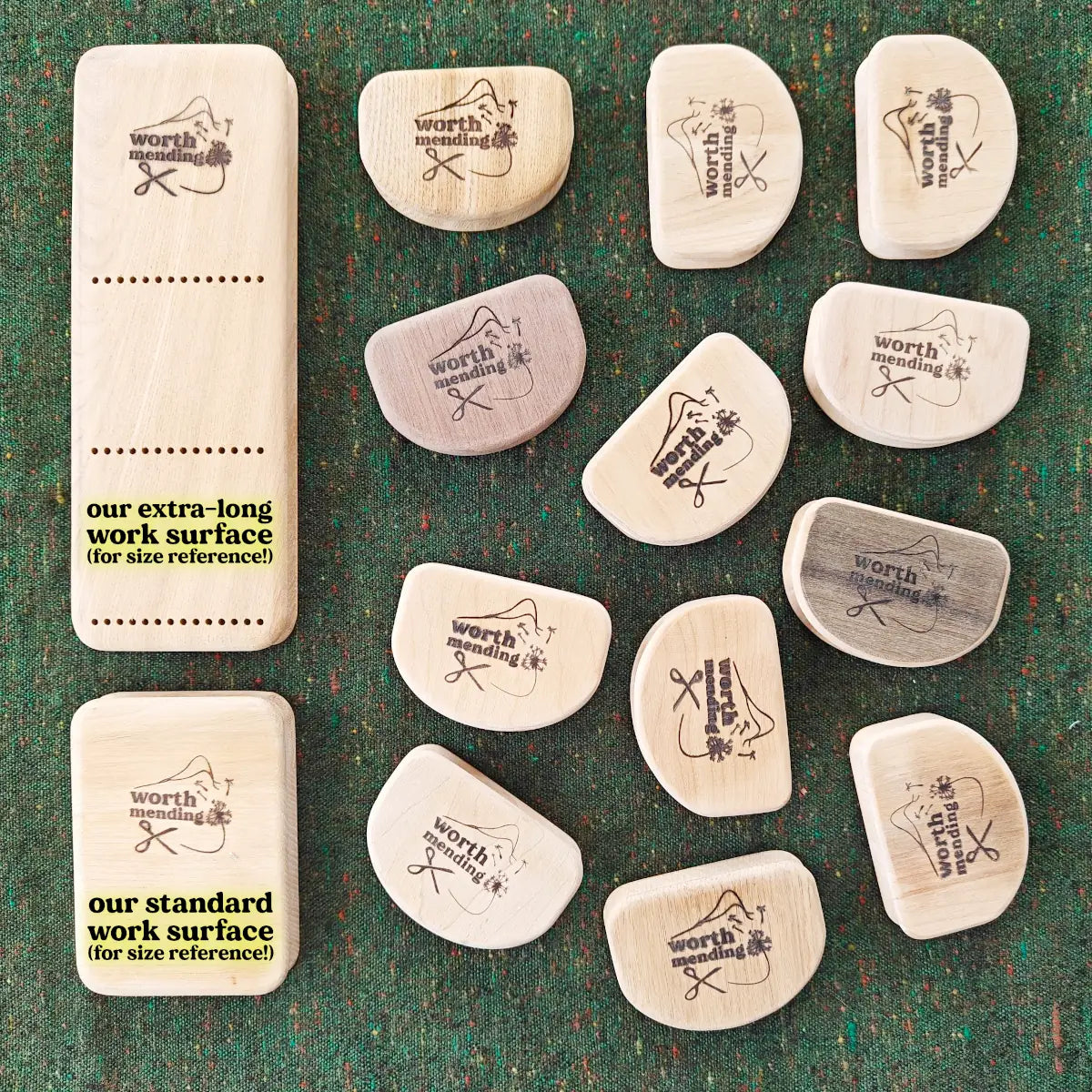 I've also found myself reaching for this compact option at times where I "could have" used the standard size board, such as while darning the purple cuff you see pictured. In this case, the small work surface allowed me to get a better grip on the sleeve hem while still leaving plenty of space to repair some fairly extensive damage.